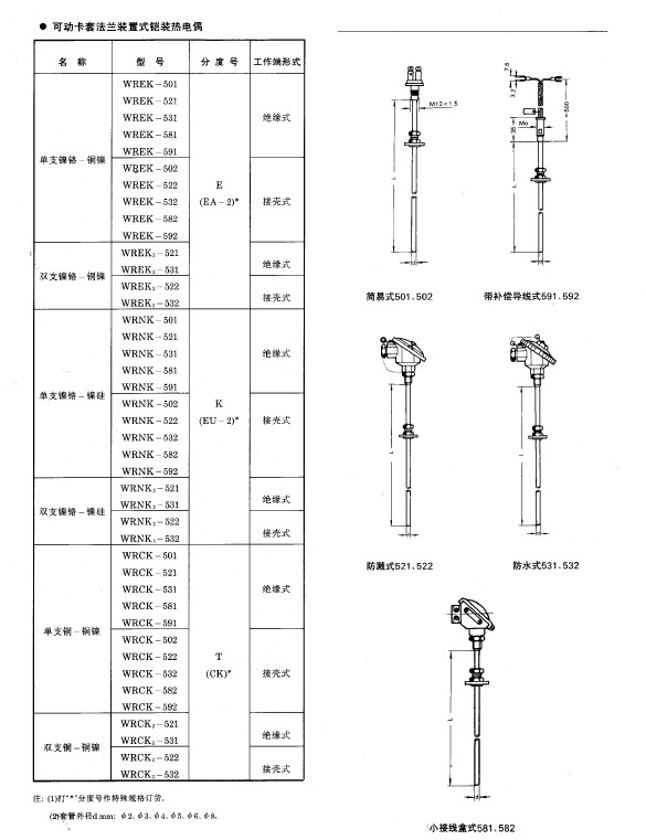 (2)鎧裝熱電偶直徑d≤Φ5mm的產(chǎn)品,熱電偶露出設(shè)備部分,用戶在安裝時須***加裝支架等輔助支承,增加其剛度,確保緊固,防止接線盒受振動而引起搖擺,損壞熱電偶。