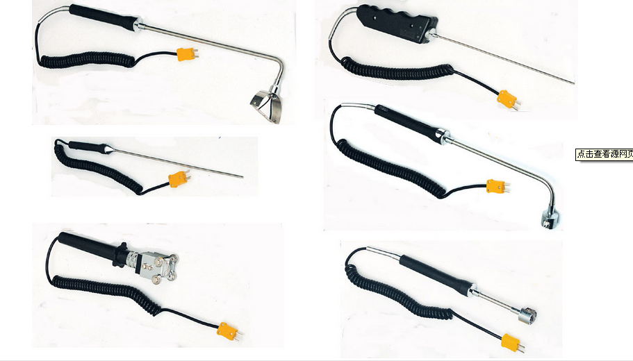 表面熱電偶分手柄式和直柄式二種手桿,有七種形狀探頭,可根據被測物體的不同形狀和需要,分別選擇。