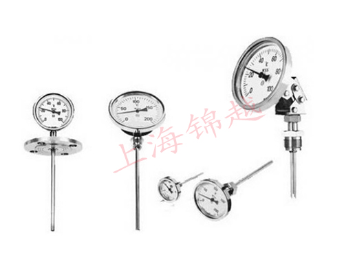 雙金屬溫度計是利用繞制成螺旋管狀的雙金屬片一端被固定,另一自由端與指針針連接,隨著溫度的變化而轉動,并帶動指針旋轉指示溫度的單針式指示溫度計。