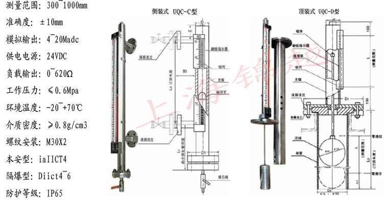 UQC系列磁性位置變送器,可適用于各種開口或密閉容器的液位測量,特別對于高粘度,強腐蝕性介質更顯其******性。所以他具有很高的可靠性。該儀表可連續(xù)輸出4~20mA模擬信號,可實現(xiàn)液位的遠距離的變送控制及報警。該儀表也可同其他的數(shù)顯儀表配套使用,達到多種控制目的。廣泛用于民工簡述中水塔,水池,水箱以及石油化工,電力,化工,環(huán)保,船舶,建筑,造紙,食品,污水處理等行業(yè)內開口或密閉儲罐,地下池槽中各種液體的液位測量,被檢測的介質可為水,油,酸,堿,工業(yè)污水等各種導電及非導電液體。