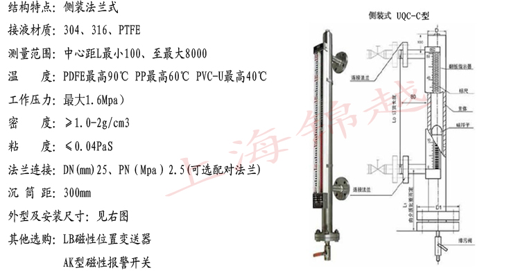 UQC-C側(cè)裝式系列 磁翻板液位計(jì)